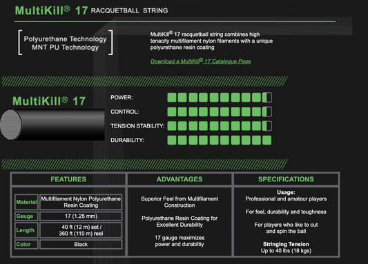 MULTIKILL 17 BLACK 40' (12M) Racquetball string set
